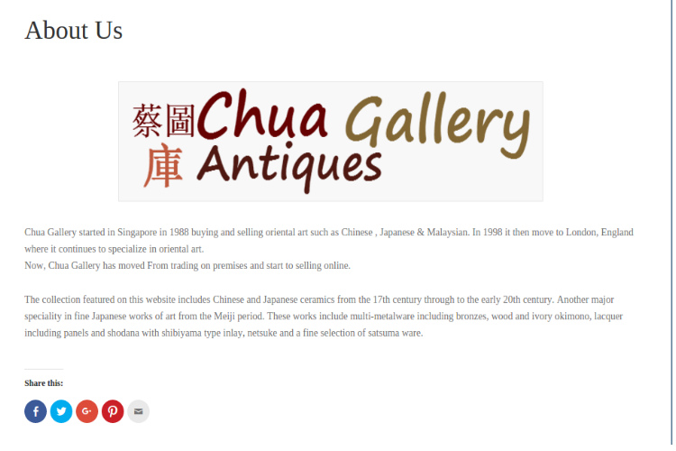 Chua Gallery is an antique shop based in London specializes in oriental art such as Chinese and Japanese ceramics and works of art.